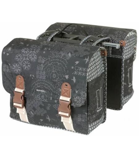 Sacoche Arriere Velo Double Basil Boheme 35l Noir-Creme Systeme Mik Sur Porte Bagage (37x15x37cm)