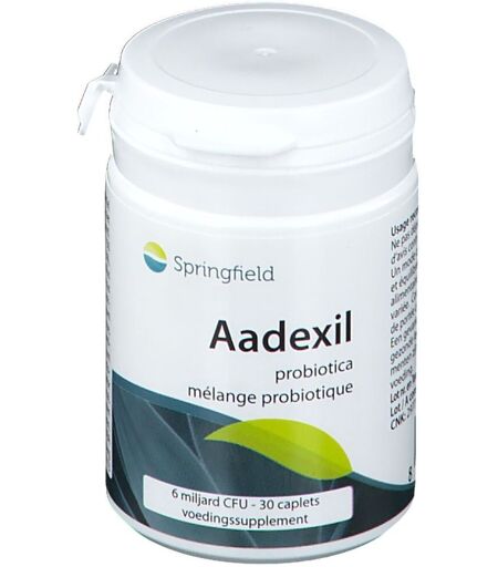 Complément alimentaire à utiliser dans le cadre d'une alimentation variée, équilibrée et d'un mode de vie sain.Aadexil de Springfield est un complexe probiotique (7 différentes souches) à libération progressive.Un probiotique multi-espèces/multi-souches a des avantages probants par rapport à un probiotique mono-souche comme le séjour prolongé dans les intestins par doublement de la capacité de colonisation et la stimulation mutuelle de la multiplication.La préparation brevetée à l’aide de la technologie Bio-tract a une double activité. En premier lieu, cette préparation veille à ce que les bactéries arrivent intactes dans les intestins. Une fois dans les intestins, les bactéries sont libérées ‘in situ’ sur une période de six heures. Ainsi, grâce à la technologie Bio-tract, un nombre constant de microorganismes probiotiques est présent pendant une période de temps plus longue dans les intestins.Composition :Ingredients complexe probiotique 6 milliards d’UFC/ 150 mg avec Lactobacillus fermentum 33%, Lactobacillus plantarum 33%, Lactobacillus acidophilus 15% Lactobacillus rhamnosus 10%, Lactobacillus salivarius 5%, Bifidobacterium bifidum 2% and Bifidobacterium longum 2%, Fructo-oligosacharide (FOS) 25 mg. Hydroxypropylméthylcellulose, pectine, cellulose microcristalline, carbonate de sodium, dioxyde de silicium, stéarate de magnésium, gomme de guar, curcuma (colorant)Conseils d'utilisation :1 comprimé, 1 à 2 fois par jour, lors d'un repas et/ou avant le coucher.Précautions d'emploi :Ne pas dépasser la dose journalière recommandée. Tenir hors de portée des enfants.Poids net :15 g = 30 comprimésFabricant :Springfield Nutraceuticals Belgium BVBAVeldenstraat 232220 Heist-op-den-BergBelgique ...