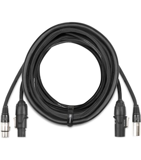 Alimentation et signal combinés dans un seul câble. Avec des connecteurs Powerconnector TR et XLR aux deux extrémités, ces câbles facilitent le câblage des effets LED professionnels, des Moving Heads et des lèche-murs.Câble combiné avec alimentation et signal 5 broches (DMX) dans un seul câble, Parfait pour connecter facilement plusieurs effets lumineux en série, XLR femelle/connecteur d'alimentation TR A - XLR mâle/connecteur d'alimentation TR B, 3 câbles d'alimentation de 1,50 mm² (16 A max.), Longueur = 10 m, Données techniques: Couleur du produit: Noir, Indice IP: IP65, Sélectionnez les deux fiches: Connecteur d'alimentation Tr IP65 (A), Connecteur d'alimentation Tr IP65 (B), XLR 5 broches IP65 (M), XLR 5 broches IP65 (F), Longueur du câble: 10 m, Câble d'alimentation: 3 x 1,5 mm², Conducteur: 8 x 0,2 mm, Diamètre extérieur: 10,8 mm, Blindage: 64 x 0,08 mm, Impédance: 120 ohms, Poids (kg): 1,5000 ...