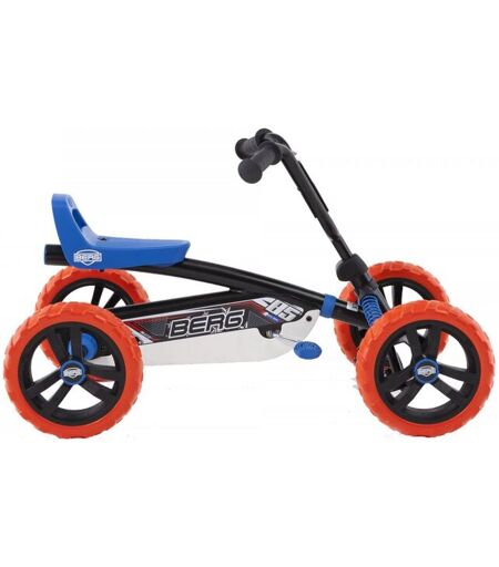 BERG Buzzy Nitro Le BERG Buzzy Nitro est LE membre de la famille des Buzzy au design off-road éblouissant. Grâce à ses 4 pneus EVA super robustes, les pneus crevés appartiennent définitivement au passé; ce kart à pédales est très sûr et stable. Le kart à pédales peut aussi bien rouler en avant qu'en arrière. Et puis en quelques secondes, ton kart à pédales peut être complètement à l'arrêt. Le BERG Buzzy Nitro convient aux enfants de 2 à 5 ans. Le volant et le siège sont tous les deux facilement réglables. Le kart à pédales a non seulement un look superbe, mais c'est aussi un moyen idéal pour les jeunes enfants d'apprendre à pédaler. D'abord, avec les pieds sur le sol, et en moins de temps qu'il ne faut pour le dire, leurs pieds sont sur les pédales et les voilà qu'ils déboulent dans la maison, le jardin ou dans le quartier! Caractéristiques du BERG Buzzy Nitro : Volant et siège réglables Pneus super silencieux EVA On ne perd jamais le contrôle des pédales, même pendant la conduite Les 4 roues offrent une adhérence exceptionnelle Poids : 8.5 kg Âge de l'utilisateur : 2-5 ans ...
