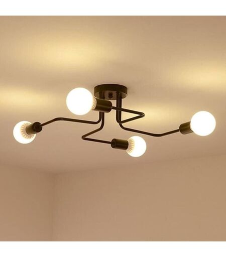 STOEX Moderne Plafonnier Lustres Luminaire Industriel en Metal, 4 Lampes E27 LED Lumière Plafond, Moderne Lustre Noir Lampe Suspension pour Salon Chambre