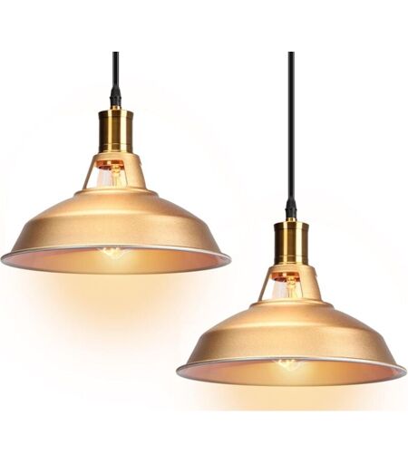 STOEX Lot de 2 Suspension luminaire industrielle vintage en métal, Lustre abat-jour éclairage intérieur 27cm pour salon chambre cuisine bar - Doré blanc