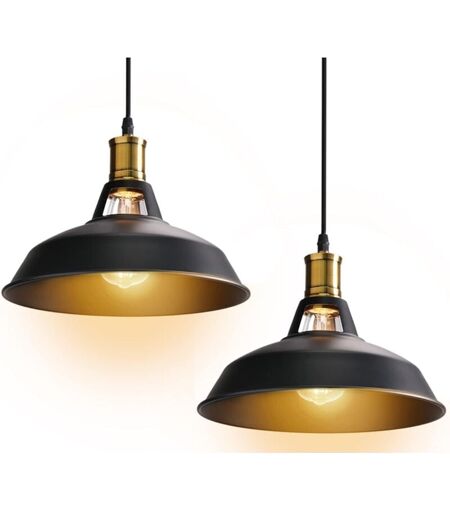 STOEX Lot de 2 Suspension luminaire industrielle vintage en métal, Lustre abat-jour éclairage intérieur 27cm pour salon chambre cuisine bar - Noir