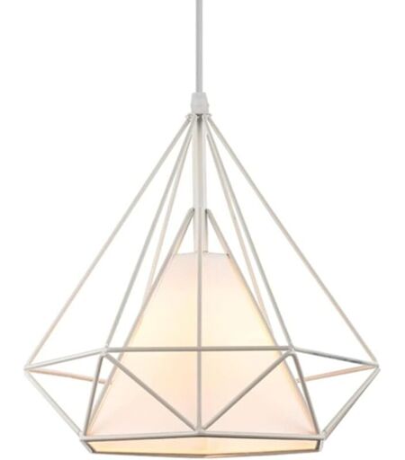 STOEX Lustre Suspension industrielle 25cm , Plafonnier Lampe de Plafond Abat-Jour Cage Diamant Corder Ajustable (Blanc)
