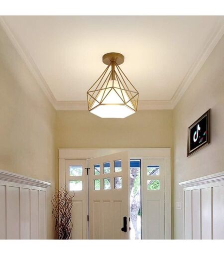STOEX Retro Plafonnier Industrielle Cage en forme Diamant en Métal Fer Lustre Suspension Luminaire pour Salon Salle Chambre Décorer Maison Cuisine, Doré