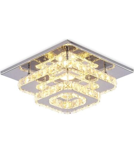 STOEX Plafonnier en Cristal Lampe de Plafond Acier Inoxydable LED Miroir 24W Lustre Moderne pour Salon Chambre Cuisine, Lumière chaude