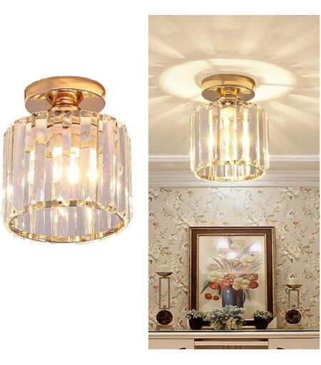Taille:14cm x 17cm(Diamètre x hauteur), Base de plafond: diamètre 10 cm, Couleur: or. Design moderne et vintage: plafonnier en cristal métal, abat-jour en verre. Design de luxe d'entrée nordique, il sublimera la beauté de vos espaces de vie avec sa lumière accueillante. Source de lumière: l'ampoule n'est pas incluse. La lampe avec une douille de lampe E27, elle convient pour une ampoule LED, une ampoule incandescence. Métal: plafonnier en métal, avec décoration en cristal clair. Facile à installer et superbe effet de rendu. Combiner Simple créatif classique unique antique style, Idéal pour la décoration intérieure et l'éclairage. Un magnifique plafonnier pour vos chambres, salon, salle à manger ou couloir, Cuisine, bureau, Café, bar, restaurant, chambre d'enfant, salle de bain. ...