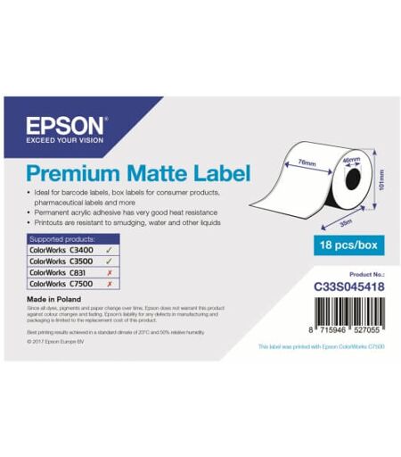 Epson Premium - papier continu pour étiquette - 1 rouleau(x) - Rouleau (7,6 cm x 35 m) - C33S045418