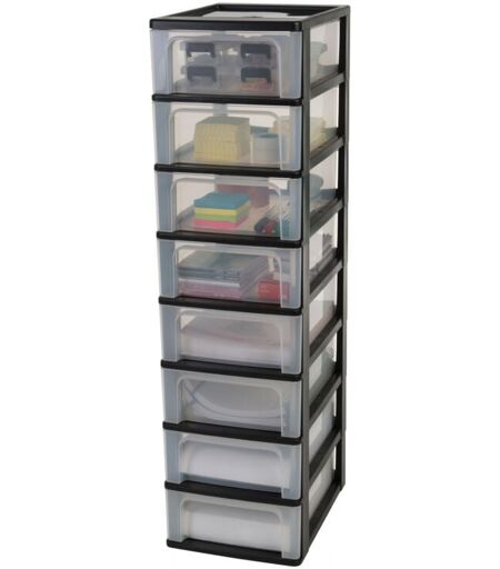 Iris Ohyama, Tour de Rangement Plastique, 8 Tiroirs Moyens, Noir, Ouverture Facile, Format A4, A5 & A6, Meuble, Organisateur, pour Bureau, Fourniture