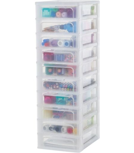 Iris Ohyama, Tour de Rangement Plastique, 10 Petits Tiroirs, Blanc, Ouverture Facile, Format A4, Meuble, Organisateur, pour Bureau, Fourniture