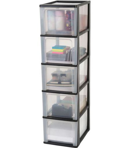 Iris Ohyama, Tour de Rangement Plastique, 5 Grands Tiroirs, Noir, Ouverture Facile, Format A4, A5 & A6, Meuble, Organisateur, pour Bureau, Fourniture
