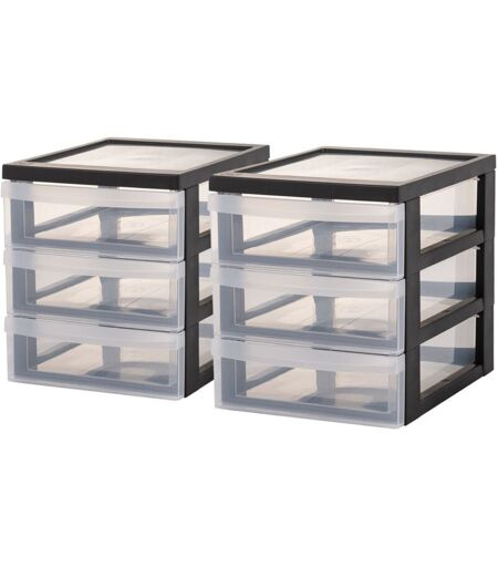 Iris Ohyama, Tour de Rangement Plastique, 3 Petits Tiroirs, Lot de 2, Noir, Ouverture Facile, Format A5, Meuble, Organisateur, pour Bureau,