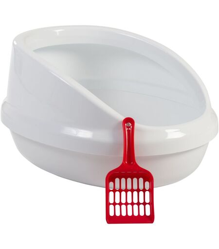 Bac à litière au format rond offrant une protection contre la dispersion de la litière et une accessibilité rapide. ...