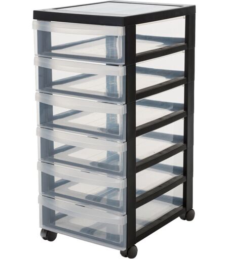 Iris Ohyama, Tour de rangement à Roulettes en Plastique, 6 Petits Tiroirs, Noir, Ouverture Facile, Meuble de Rangement,Papeterie, pour Chambre, Salle