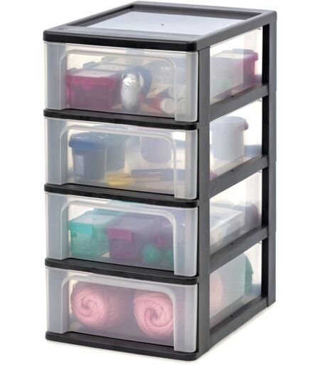 Iris Ohyama, Tour de Rangement Plastique, 4 Tiroirs Moyens, Noir, Ouverture Facile, Format A4, A5 & A6, Meuble, Organisateur, pour Bureau, Fourniture