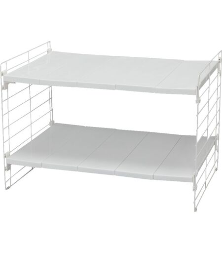 Créez différents niveaux de stockage au sein de vos placards de cuisine ou de salle de bains à l'aide de cette gamme d'étagères idéalement conçues pour s'adapter à tous vos besoins. Extensible en largeur, cette étagère convient à des placards plus ou moins larges, de même vous pouvez déterminer la hauteur des étagères intermédiaires en fonction des éléments que vous stockez sur les niveaux inférieurs. Par ailleurs, composée de lames amovibles, les étagères intérmédiaires s'adaptent aux tuyaux d'évacuation placés sous l'évier de cuisine. Conçue en acier inoxydable traité anti-corrosion et anti-rouille la structure ne se détériore pas au contact de l'humiditité et bénéficie d'une parfaite stabilité grâce aux deux grilles latérales dotées de renforts anti-dérapants. Chaque étagère supporte une charge de 5 kgs et l'ensemble se monte très facilement, sans aucun outils nécessaire. ...