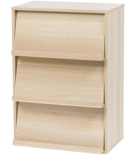 Iris Ohyama, Module Furniture Chr-3 Meuble De Rangement 3 Niches À Porte Rabattable En Bois Mdf, Engineered Wood, Chêne Clair