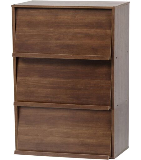 Iris Ohyama, Module Furniture Chr-3 Meuble De Rangement 3 Niches À Porte Rabattable En Bois Mdf, Engineered Wood, Chêne Brun