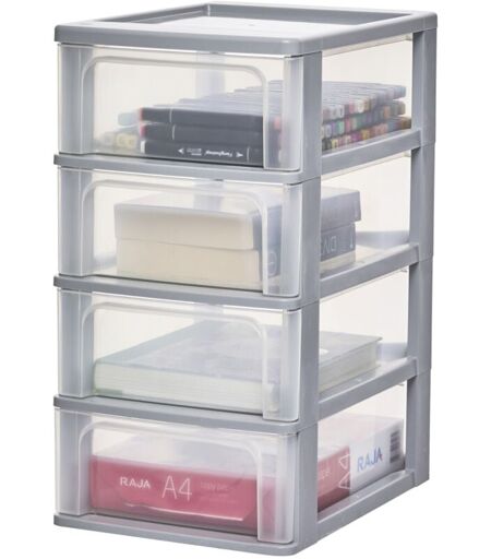 Iris Ohyama, Tour de Rangement Plastique, 4 Tiroirs Moyens, Gris, Ouverture Facile, Format A4, A5 & A6, Meuble, Organisateur, pour Bureau, Fourniture