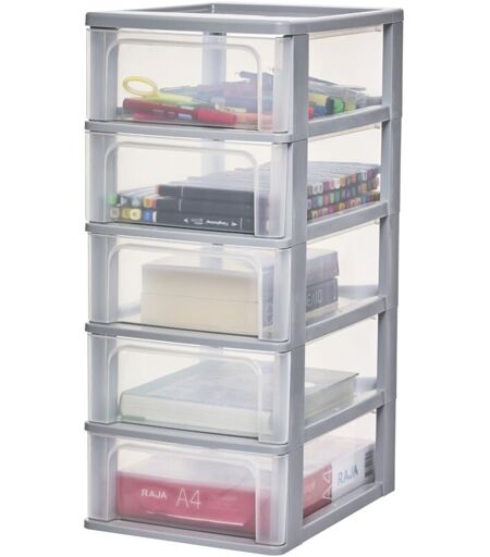 Iris Ohyama, Tour de Rangement Plastique, 5 Tiroirs Moyens, Gris, Ouverture Facile, Format A4, A5 & A6, Meuble, Organisateur, pour Bureau, Fourniture