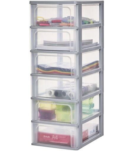 Iris Ohyama, Tour de Rangement Plastique, 6 Tiroirs Moyens, Gris, Ouverture Facile, Format A4, A5 & A6, Meuble, Organisateur, pour Bureau, Fourniture