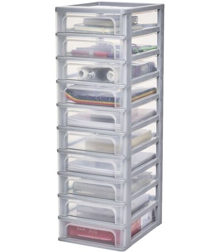 Iris Ohyama, Tour de Rangement Plastique, 10 Petits Tiroirs, Gris, Ouverture Facile, Format A4, Meuble, Organisateur, pour Bureau, Fourniture