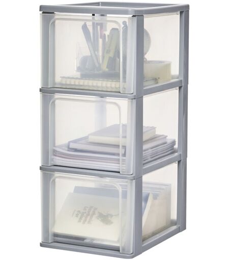 Iris Ohyama, Tour de Rangement Plastique, 3 Grands Tiroirs, Gris, Ouverture Facile, Format A4, A5 & A6, Meuble, Organisateur, pour Bureau, Fourniture