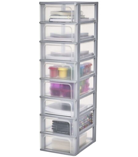 Iris Ohyama, Tour de Rangement Plastique, 8 Tiroirs Moyens, Gris, Ouverture Facile, Format A4, A5 & A6, Meuble, Organisateur, pour Bureau, Fourniture