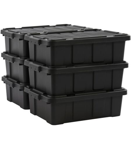 Iris Ohyama, Caisse Rangement avec Couvercle Robuste, 25L, Lot de 6, Noir, Compact, Durable, Empilable, pour Garage, Etagères, Déménagement,