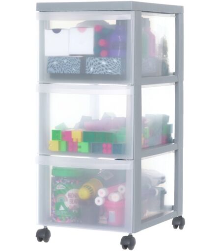 Iris Ohyama, Tour de rangement à Roulettes, Plastique, 3 Grands Tiroirs, Gris, Ouverture Facile, Meuble de Rangement, Papeterie, pour Chambre, Salle