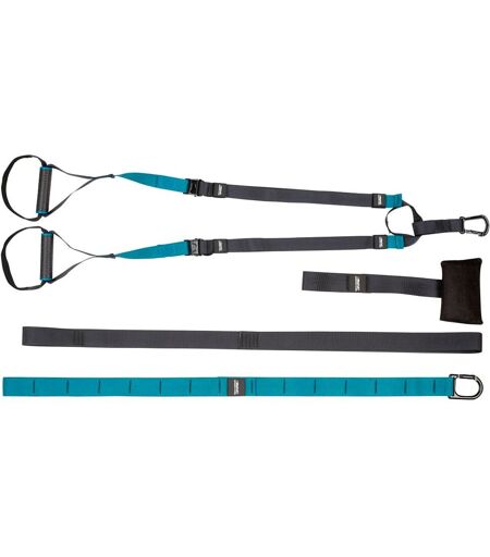 L'ensemble d'entraînement de suspension Avento est un équipement d'exercice parfait pour entraîner tout le corps. Il existe d'innombrables exercices de poids corporel où la contre-force est fournie par votre propre masse afin que vous puissiez toujours effectuer un entraînement complet au niveau souhaité. Il est vraiment facile de les installer, les démonter et les déplacer autour de cette bande d'exercice complexe. Vous pouvez littéralement l'emmener n'importe où pour faire un entraînement sur place. Fixez votre kit d'entraînement à suspension à une poutre, un poteau, un appareil, un arbre ou simplement à une porte de la maison et vous pouvez commencer. L'appareil d'entraînement est fait de matériaux de haute qualité tels que du nylon durable et des crochets renforcés pour des années d'entraînement. De plus, cet accessoire comporte deux poignées en caoutchouc confortables avec une texture antidérapante et une boucle à utiliser pour les pieds ou les bras. L'ancrage de porte inclus facilite l'utilisation de cette bande à suspension d'exercice à la maison. Remarque: Assurez-vous de ne pas attacher le crochet métallique de l'appareil à suspension à un autre objet métallique. Le frottement entre les objets métalliques favorise la fatigue du métal et accélère l'usure. Utilisez toujours l'ancrage de porte ou l'ancrage de suspension inclus pour accrocher l'appareil à suspension. Contrairement à de nombreux autres appareil à suspension, cet ensemble Avento possède une boucle de sécurité, ce qui garantit que vous ne pouvez pas simplement tomber lorsque vous relâchez l'une des deux poignées ou boucles de pied. Couleur : Noir et bleu Matériau : Nylon Sangles fortes et durables 2 poignées en caoutchouc confortables avec texture antidérapante Avec une boucle à utiliser pour les pieds ou les bras Compact et portable Avec crochets renforcés Y compris l'ancrage de porte Large gamme d'exercices possibles Poids corporel maximum utilisateur : 150 kg ...