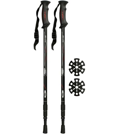 ABBEY Bâtons de marche anti-choc aluminium x 2 - Gris / Bleu - Des bâtons de marche et randonnée a 3 brins, vendus par paire et réglables en longueur de 63 a 135 cm - Ces bâtons absorbent les chocs grâce a un systeme de suspension, et amenent un amorti au niveau des bras - Deux ... ...