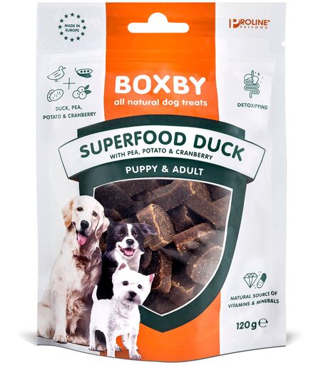 120g Friandises Boxby Superfood, Canard, petits pois et cranberries - pour chien