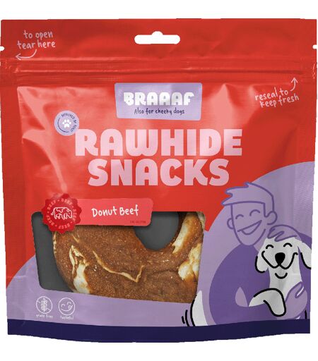 Si vous recherchez une friandise à mâcher qui dure longtemps et qui rend votre chien heureux, le Donut au bœuf et cabillaud de Braaaf est fait pour vous ! Sa formule de grande qualité est riche en bœuf, poisson et pure peau. Votre chien va adorer... ...