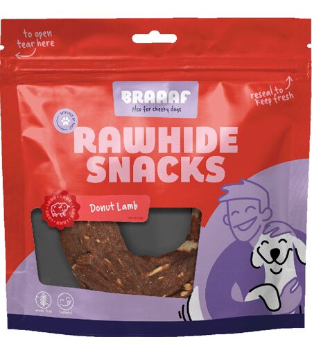Un goût naturel, une forme pratique : tout pour faire plaisir à votre chien ! La friandise Braaaf Donut à l'agneau et au cabillaud est formulée exclusivement à base d'ingrédients naturels, dont notamment du délicieux agneau. Sa recette est... ...
