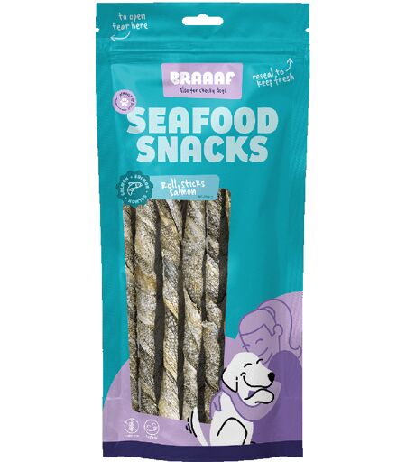 Braaaf Bâtonnets torsadés à mâcher, saumon pour chien - 20 cm (97 g)