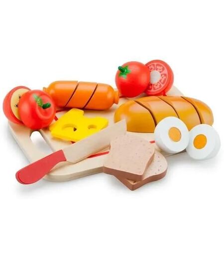 Petit déjeuner à découper (avec velcro) pour préparer un délicieux déjeuner. Comprend: 1 ?uf, 1 baguette, 2 toast, 2 tranches de fromage, 1 saussice, 1 pomme, 1 tomate et 1 couteau avec une planche à découper. ...