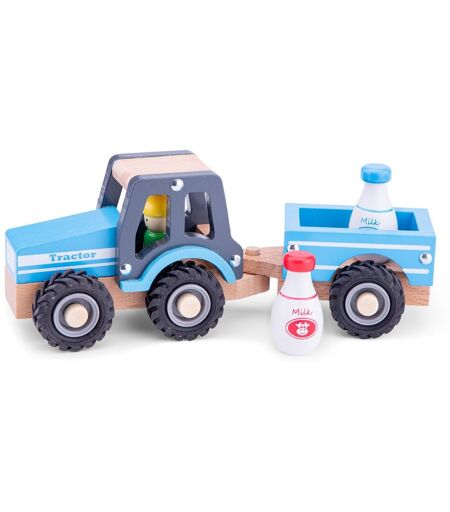 New Classic Toys - Tracteur Avec Remorque Bois - Lait De Bidon