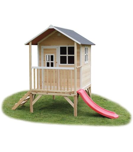 Chaque enfant r?ve d'avoir sa propre petite maison dans le jardin, n'est-ce pas ? Un endroit pour bien s'amuser avec ses fr?res et s?urs ou avec ses petits copains et copines. Le mod?le Loft 300 est une telle maisonnette. Avec ses dimensions int?rieures de 1,18 m x 1,18 m, c'est un mod?le spacieux pour jouer ? plusieurs. Ce mod?le sur?lev? est ?quip? d'une v?ritable v?randa et d'un toboggan, pour redescendre en un instant ! Et, gr?ce au toit ?tanche, l'int?rieur reste toujours sec ! Avec ses ludiques fen?tres blanches, cette maisonnette est le r?ve de tout enfant ? partir de 3 ans.. Durable. Les petites maisons sont fabriqu?es en c?dre s?ch?. C'est une essence particuli?re, car elle r?siste de nature aux intemp?ries et ? l'humidit?. Elle n'est donc pas sensible ? la pourriture du bois. Le c?dre n'est pas trait? avec des produits chimiques malsains, comme c'est souvent le cas pour le pin et le sapin. Le c?dre respecte donc l'environnement et est s?r pour les enfants. Les panneaux sont d?j? peints avec une lasure ? base aqueuse.. S?curit?. Les petites maisons r?pondent aux normes de s?curit? actuellement en vigueur (EN-71) : les enfants peuvent donc s'amuser en toute s?curit?. Par ailleurs, cette essence n'est pas trait?e avec des produits chimiques malsains et elle pr?sente un autre avantage : elle ne forme pas d'?chardes.. Montage simple. La petite maison se compose de panneaux, portes et fen?tres pr?assembl?s. C'est donc un v?ritable syst?me pr?fabriqu?.. Par ailleurs, les panneaux sont aussi munis d'avant-trous : la maison se monte donc en un tour de main.. Livraison en France m?tropolitaine Hors Corse Uniquement. D?lai de livraison moyen 15 jours ...