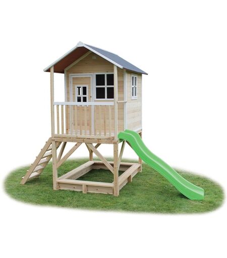 Quel enfant ne souhaite pas poss?der sa propre cabane de jardin ? Un endroit id?al pour jouer avec son fr?re, sa s?ur, son copain ou sa copine ? Le Loft 500 est une cabane pour tous les ?ges. Avec ses dimensions int?rieures de 1.18m x 1.18m, c'est une cabane de grande taille permettant de jouer ? plusieurs. La cabane sur?lev?e poss?de sa propre v?randa et gr?ce au toboggan, tu redescends en un ?clair ! Le toit ?tanche permet de toujours garder l'int?rieur sec ! Les plus jeunes peuvent s'amuser dans le bac ? sable tandis que les enfants plus ?g?s jouent en haut ! Avec ses joyeuses fen?tres blanches, cette cabane est une maison de r?ve pour les enfants ? partir de 3 ans.. Durable. Les cabanes sont fabriqu?es en c?dre s?ch?. Il s'agit d'un type de bois particulier naturellement r?sistant aux intemp?ries et ? l'humidit?, ce qui le rend imputrescible. Le c?dre n'est pas trait? avec des produits chimiques toxiques, comme c'est souvent le cas pour le pin sylvestre ou l'?pic?a. Le c?dre est donc bon pour l'environnement et sans risque pour les enfants. Les montants sont peints avec une lasure en phase aqueuse.. S?curit?. Les cabanes r?pondent aux normes de s?curit? actuellement en vigueur (EN-71) permettant de garantir un jeu en toute s?curit?. En outre, l'essence de bois n'est pas trait?e avec des produits chimiques toxiques et poss?de la caract?ristique int?ressante de ne pas se fendre.. Montage facile. La cabane est constitu?e de panneaux pr?mont?s, comprenant ?galement les fen?tres et la porte. Un v?ritable syst?me pr?fabriqu?, donc. En outre, les panneaux sont ?galement pr?perc?s, ce qui permet de monter la cabane en un tournemain.. Livraison en France m?tropolitaine Hors Corse Uniquement. D?lai de livraison moyen 15 jours ...