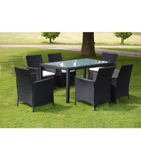 vidaXL Mobilier À Dîner Jardin 7 Pcs Avec Coussins Résine Tressée Noir