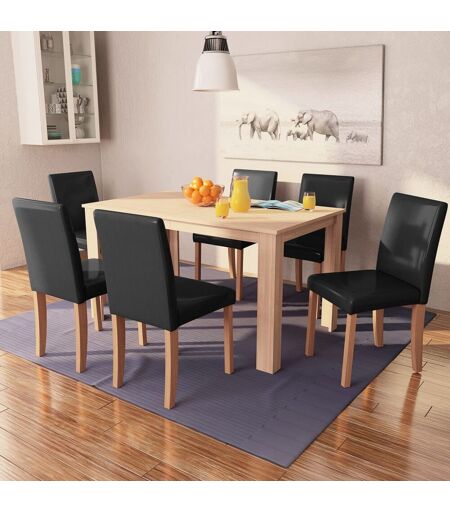 Vidaxl Table Et Chaises 7 Pcs Cuir Synthétique Chêne Noir
