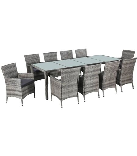 Vidaxl Mobilier À Dîner De Jardin 11pc Et Coussins Résine Tressée Gris