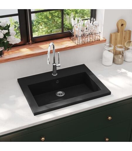 VIDAXL Lavabo en granit 600 x 450 x 120 mm Noir