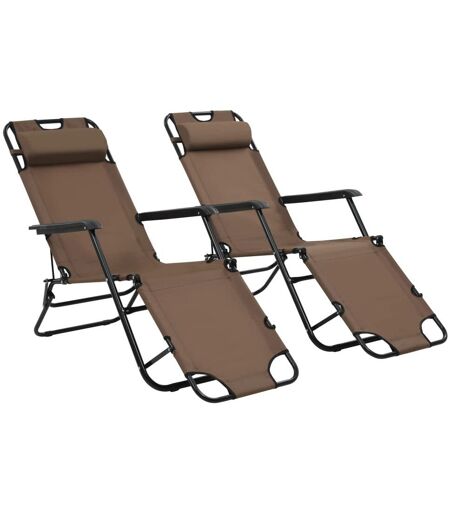 Vidaxl Chaises Longues Pliables 2 Pcs Avec Repose-Pied Acier Marron
