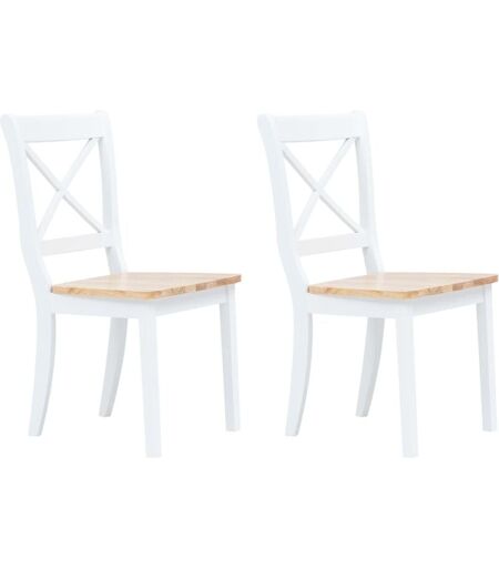Vidaxl - Chaises à manger lot de 2 blanc et bois clair bois hévéa massif