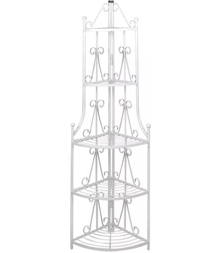 Notre étagère blanche avec des motifs à rosiers va attirer les regards de vos amis. Cette étagère de cinq niveaux a une hauteur de 160 centimètres. Vous pouvez la poser dans n¿importe quel coin dans votre maison ou en extérieur.Cette étagère est antirouille grâce à son cadre en acier de haute qualité et la peinture en poudre ce qui assure des années d¿utilisation. Dimensions : 36 x 160 cm Matériau : tube en acier Couleur : blanc ...