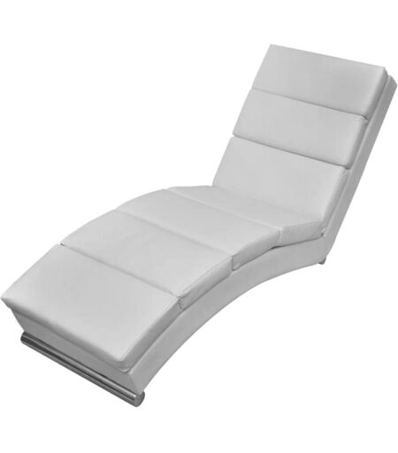 Description générale Cette confortable chaise longue est un meuble élégant. Grâce à son design élégant, simple et propre, qui respecte l'ergonomie, la chaise longue est très confortable. Cette chaise longue dispose d'un siège rembourré pour un confort optimal. Les barres en acier solides contribuent à la construction vigoureuse. Notre chaise longue entièrement rembourrée apportera du charme et de l'élégance partout où elle sera placée. Maximum 110 kg par siège. Soyez conscient du risque de feux ouverts et d'autres sources de forte chaleur à proximité du produit. Spécifications techniques Taille totale : 154 x 52,5 x 72 cm (L x l x H) Hauteur du dossier : 62 cm Hauteur du siège à partir du sol : 31 cm Couleur : blanc Cadre en bois durable Barre de pied en acier galvanisé Matériel: Coton: 5%, Polyester: 15%, Polyuréthane: 10%, PVC: 70% Bon à savoir Nous ne pouvons pas expédier à Corsica,Ile de Bréhat,Ile d'Ouessant, Ile de Batz,Ile Molène,Ile de Sein,Belle Ile,Ile de Groix,Ile aux ...