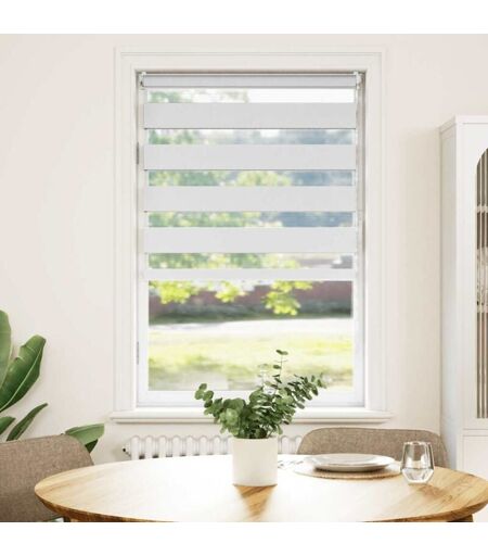 Ce store à rouleau élégant est un choix idéal pour la maison moderne, et peut être une alternative élégante aux stores traditionnels vénitiens ou verticaux. Le store a deux parallèles alternants de tissu opaque et transparent. En ajustant simplement la position du store, on peut choisir d'aligner les couches opaques et transparentes du dos et du devant de manière à créer un effet de filtrage de la lumière unique adapté à tout espace de vie contemporain. Le store est en polyester 100%. Il est livré avec une chaîne de traction blanche qui est facile à installer et à utiliser. Veuillez noter que les dimensions données sont les dimensions du tissu. La largeur du rail supérieur incluant les accessoires de montage sera plus large de 3 cm par rapport au store. La livraison inclut 1 rail supérieur de 50 cm en aluminium avec tissu imprimé de 47 x 100 cm, 1 rail supérieur de 50 cm, 1 rail lourd inférieur de 50 cm, 2 crochets, 2 supports, 1 support de chaîne, 2 joints et 1 x chaîne à billes. ...