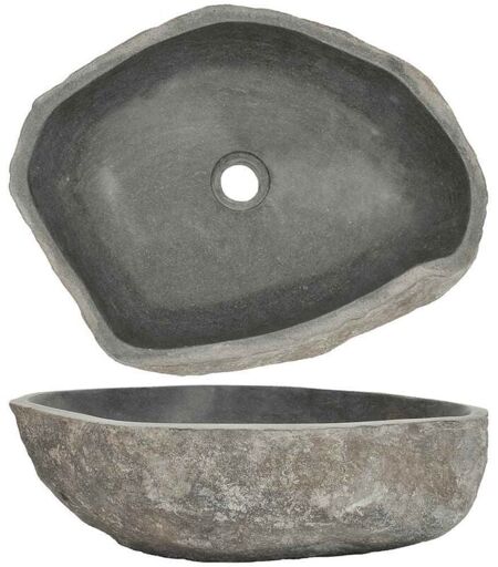 VIDAXL Lavabo en pierre de rivière Ovale 45-53 cm